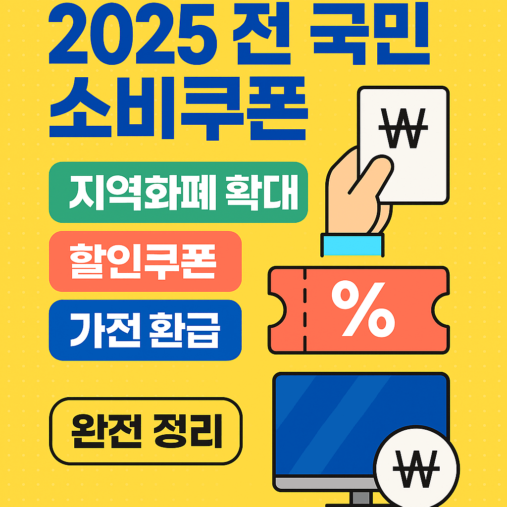 2025년 정부의 2차 추경으로 전 국민 소비쿠폰, 지역화폐 확대, 생활 할인쿠폰, 고효율 가전 환급제도가 시행됩니다. 한 마디로 말해 “내 돈을 돌려받는 절호의 기회”입니다.